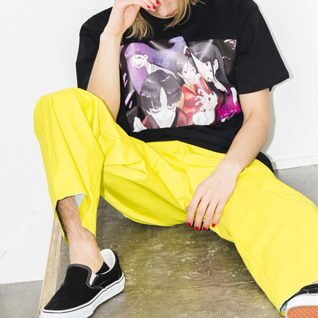 オーバーサイズではないですが少しゆとりのあるサイズ感と存在感のあるプリントなので一枚でシンプルに着ていただくのもおすすめです。ユニセックスで着用していただけます。
