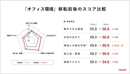 オフィス移転やリニューアルをはじめとする「働く場」づくりをトータルで提案・コーディネートするリリカラ株式会社(東京都新宿区、代表取締役社長執行役員 山田俊之)のスペースソリューション事業部は、2023年10月の自社オフィス移転において実施した社員へのアンケート調査をもとに、移転前後の環境の変化とその効果を分析した「オフィス環境データ分析レポート」を公開いたしました。