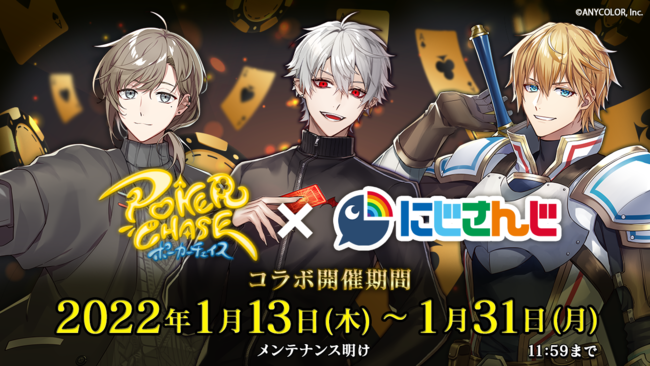 株式会社C-bet(東京都渋谷区、代表:田谷野 貴正、https://c-bet.co.jp/) は、バトロワ式オンラインポーカーゲーム『ポーカーチェイス』と人気バーチャルライバーグループ「にじさんじ」とのコラボイベントが本日1月13日(木)よりスタートしたことをお知らせします。