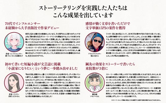 本書では、実際にストーリーの技術を学び、未経験から大きな成果を上げた人々の事例を複数紹介しています。