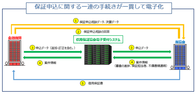 保証申込手続きの電子化は、保証審査のリードタイム短縮により中小企業者への資金供給が一層迅速化されることや、申込書類の郵送や持ち込みが不要となり金融機関の事務負担が軽減されることにもつながります。