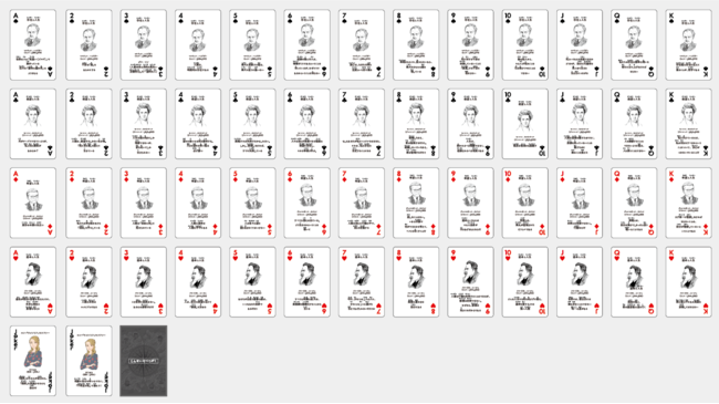 各カードには有名な哲学者たちの肖像画や名言が掲載されており、このトランプで遊ぶことで哲学者たちの考え方や見解を知ることができます。これにより、哲学に関する知識が深まると同時に、自分自身の考え方や見解も深めることができます。