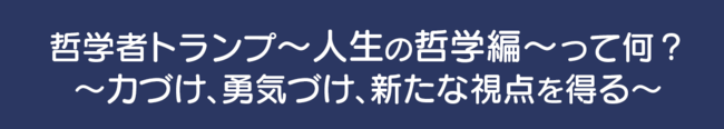 このたび、より多くの人に、幼いうちから、「哲学する」ことの楽しさに触れていただくことが活動の裾野を広げることにつながるようにという思いで、「哲学者トランプ」の開発に至りました。