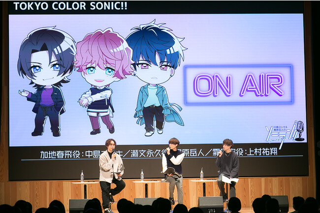 「東京カラーソニック!!」3rdシーズン制作決定を記念して、イベントに出演していた加地春飛役の中島ヨシキさん、瀬文永久役の梶原岳人さん、霧島宙役の上村祐翔さんからキャストコメントが寄せられました!