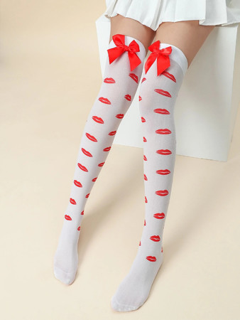 商品名 :リップパターン 蝶々結びデコレーション 膝上ハイソックス