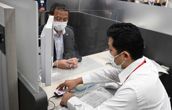 その後、窓口を訪れた人たちが早速、タッチパネルを使って手続きを行っていました。