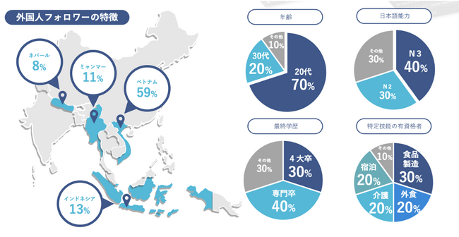 こういった背景から、人手不足に悩む地方企業と日本で働く機会を求めている外国人材とのマッチングを促進するUp Place(アップ プレイス)の提供を開始いたしました。外国人労働者と地域企業とのマッチングを通じて、地方の定住人口の増加にも寄与します。