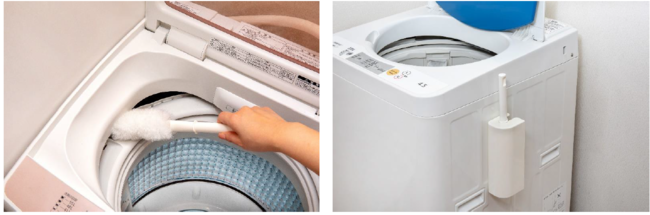 柄付きのブラシで手を汚すことなく、ケースは洗濯機に張り付けて保管できるので、汚れに気づいた時にサッとお掃除ができます。