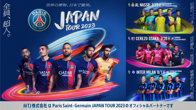 MTJ株式会社(所在地:福岡県北九州市、東京都港区六本木、代表取締役:山重柾人)は、株式会社CIRCUS(所在地:東京都港区麻布台、代表取締役社長:河野広一)が主催するParis Saint-Germain JAPAN TOUR 2023とオフィシャルフードスポンサー契約を締結した事をお知らせいたします。