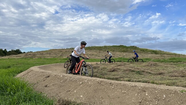 上川町の市街地近郊の中山スキー場には、子ども向けのMTBパンプトラックコースが設置されており、夕方まで子供たちが走り続け、楽しみつつライディングスキルを磨いていました。今後、この街中のパンプトラックは特に町内の子供たちに利用してもらえるように仕組みを検討しています。