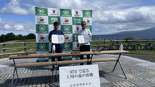 この特別な瞬間を祝し、上川町の美しい森へ皆様を誘うMTBコースのオープニングイベントが開催され、その中でオープニングセレモニーと包括連携協定の締結式が盛大に行われました。
