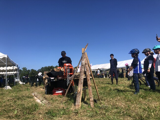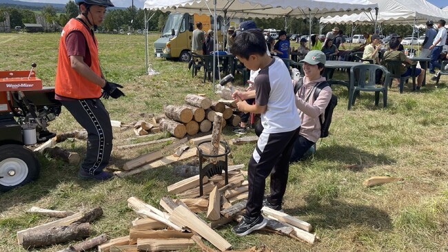 イベントでは、町内でキャンプ場を運営する株式会社KOUZUKIが、上川町産の木材を使い、薪割り体験を行いました。森の近くで暮らす上川の子供たちにとっても薪割りの機会は決して多くなく、身近な上川の森や材への興味を持っていただける機会となりました。
