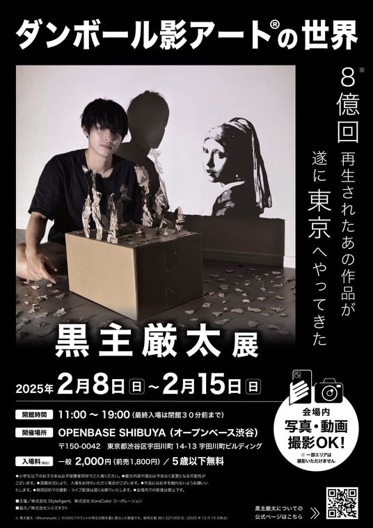 段ボールと光だけで世界中の注目を集める影絵アーティスト・黒主厳太による初個展「黒主厳太展」は、このたび展示内容および当日チケット情報を解禁いたしました。