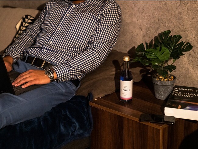 ストレスフルな現代社会にチル(自分らしくいられる空間や時間)を提供する日本初のCBD配合リラクゼーション低アルコール飲料です。