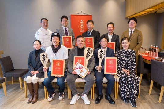 「玄米王2023」受賞者6名と審査員4名での記念撮影の様子/会場:日本料理 一凛(神楽坂)