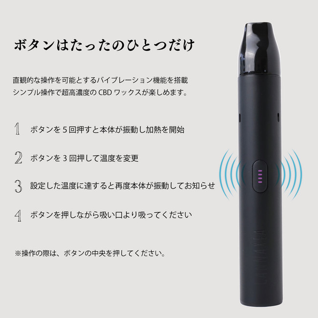 カンナシアのCBDワックス専用デバイスは、ワックスの種類に合わせた三種類の温度設定が可能です。国内で市販されている様々な種類のワックスに幅広く対応します。