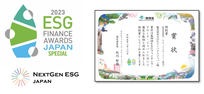 株式会社SDGインパクトジャパン(以下「SIJ」)は、環境省が選定する第4回「ESGファイナンス・アワード・ジャパン」において、投資家部門 アセットマネージャー部門 特別賞を受賞しました。同賞は、本日開催されたオンライン表彰式において授与されました。