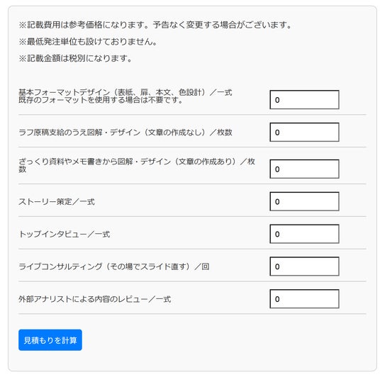 インクデザインでは、簡単な費用のシミュレーターを用意しました。ざっくりの費用感を把握ください。