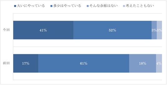 前回調査においては、「そんな余裕はない」が18%あり、一定の準備をしている層の割合は今回よりも低い。