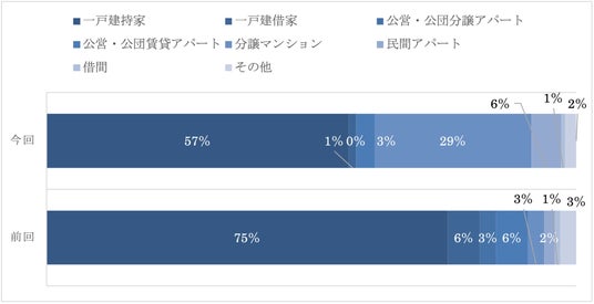 前回調査と比較すると、一戸建持家の割合が低く、分譲マンションの割合が高くなっている。