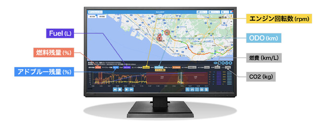 今回新たに提供するグリーンプランでは、対象車両の位置情報や走行履歴、車両の速度表示などベーシックプランの機能に加え、環境問題に取り組む企業へのサポートを充実すべく、燃料消費量や平均燃費、さらにはCO2排出量の見える化を実現、サスティナブル(持続可能)な運送業を目指す企業の取引先や自治体への環境負荷等の報告書提出の省力化にも貢献いたします。