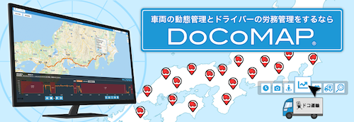 ※1 車両に取付たGPS端末か らの位置情報で、車両の位置をGoogle Maps(TM)上に表示・管理する車両位置情報管理サービス。*DoCoMAPは株式会社ドコマップジャパンの登録商標です。Google Maps(TM)はGoogle LLC の商標または登録商標です。