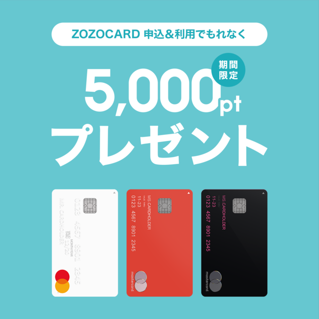 対象期間中、ZOZOCARDに申込、利用した方に5,000円分のZOZOポイントをプレゼントするキャンペーンを開催いたします。