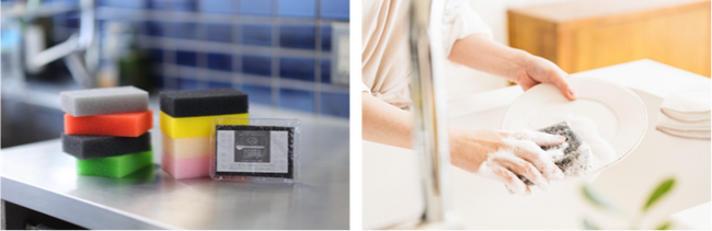 ダイニチ・コーポレーションは創業から、食器洗い用固形洗剤の製造販売を行っています。製造から販売を行う中で、固形洗剤と相性の良いスポンジを研究し、高品質ポリウレタンを使用した、従来のスポンジの概念を覆す「サンサンスポンジ」が生まれました。半年以上使えるほど丈夫で長持ちなので、ごみの削減に。泡立ちが早く、そして、泡切れ、水切れが抜群のため節水にも繋がります。また、圧縮されたわずか7mmのパッケージで届くので収納場所にも困りません。「洗い物に費やす時間に“ときめき”」をモットーに、利用いただく方の声にお応えしつつ、コスパよく、ずっと使いたい商品を作りを続けています。