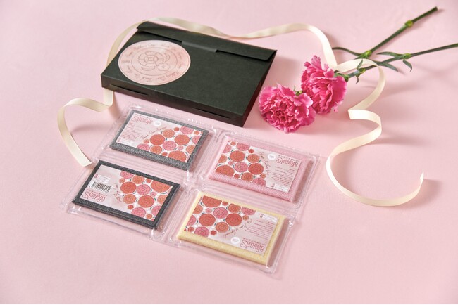 母の日限定パッケージのスポンジ4個を手渡しBOXに入れてお届けします。手軽なギフトにおすすめです。