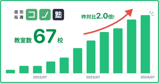 「個別指導塾 コノ塾」を運営する株式会社コノセルは、「個別指導塾 コノ塾」において、7月に新たに4校舎を開校します。全国での教室数が67校となり、昨対比約2.0倍に拡大したことをお知らせいたします。