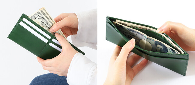 ■フタを開ける手間なくワンアクションでお札とカードにアクセス◎