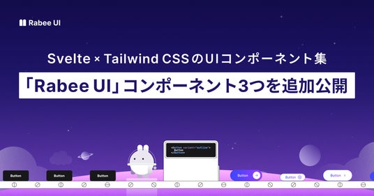 株式会社Rabee(本社:東京都渋谷区、代表取締役:上松勇喜)は、Svelte × Tailwind CSSのUIコンポーネント集「Rabee UI」において、UIコンポーネント3種類を新たに公開しました。