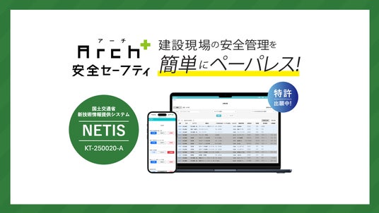 株式会社Arch(代表取締役:松枝直、以下Arch)は、建設現場の安全管理をデジタル化する「Arch安全セーフティ」が、国土交通省の新技術情報提供システム(NETIS)に登録されたことをお知らせいたします(登録番号:KT-250020-A)。Archは本製品のNETIS登録を通じて顧客による工事現場での新技術提案を後押しし、建設現場におけるDXの加速に貢献してまいります。