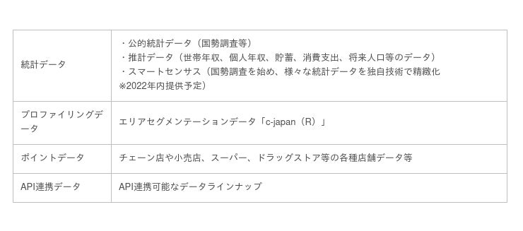 なお、国勢調査を始め、消費支出データや地価ポテンシャルデータ等の統計データをスマートデータ化し、今後「スマートセンサス」としてラインナップを拡充していきます。