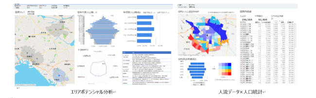 (BIツールで国勢調査と自社や外部のデータ等を組み合わせた分析ダッシュボード例)