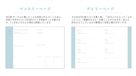 TO BE思考」でありたい自分に自然と少しずつ変化していくことができる、まじめながんばりやさんのための手帳です。