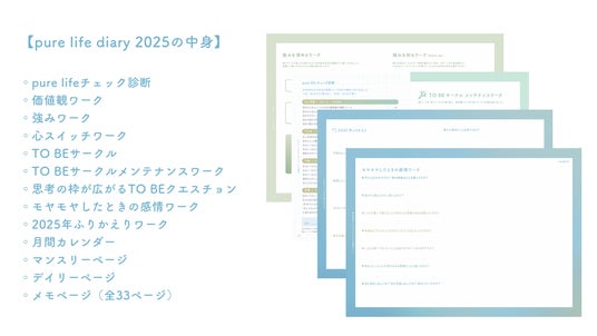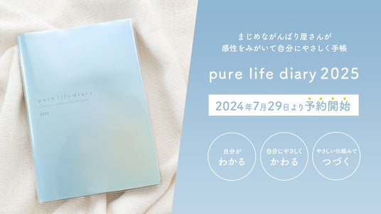 feppiness株式会社(所在地:福岡県糸島市、代表取締役:本橋へいすけ)は、まじめながんばり屋さんが感性をみがいて自分にやさしくなれる手帳「pure life diary 」2025年版を、2024年7月29日より公式サイトにて予約受付を開始します。