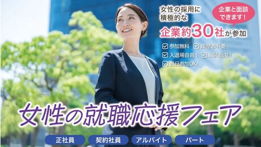 - 参加企業:30社様予定和歌山市内に本社or営業拠点があり、女性を積極的に採用する予定のある企業雇用形態は正社員・契約社員・パート・アルバイト・業務委託派遣はNG(長く安定して働けない場合があるため)