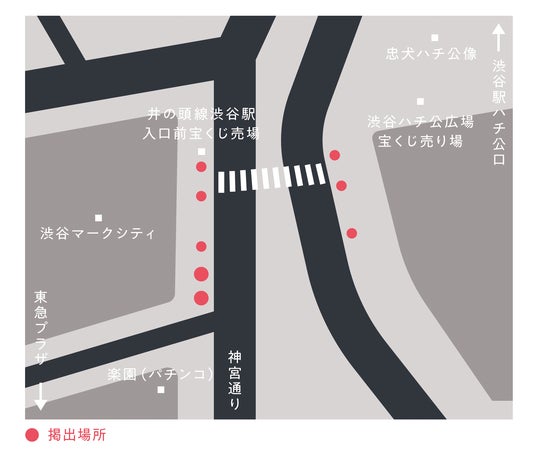 8点のアート作品は渋谷駅ハチ公口からマークシティ方面に向かう一帯に展開中。