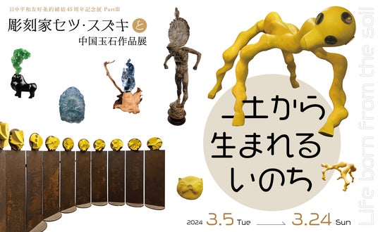 2024年、日中平和友好条約締結45周年を記念する第三弾として「土から生まれるいのち -彫刻家セツ・スズキと中国玉石作品展-」と題し、アートハウスSTUDIO8、御雲文化発展株式会社との3者共催により、日本と中国の彫刻芸術をテーマにした新しいコラボレーション展覧会を開催します。