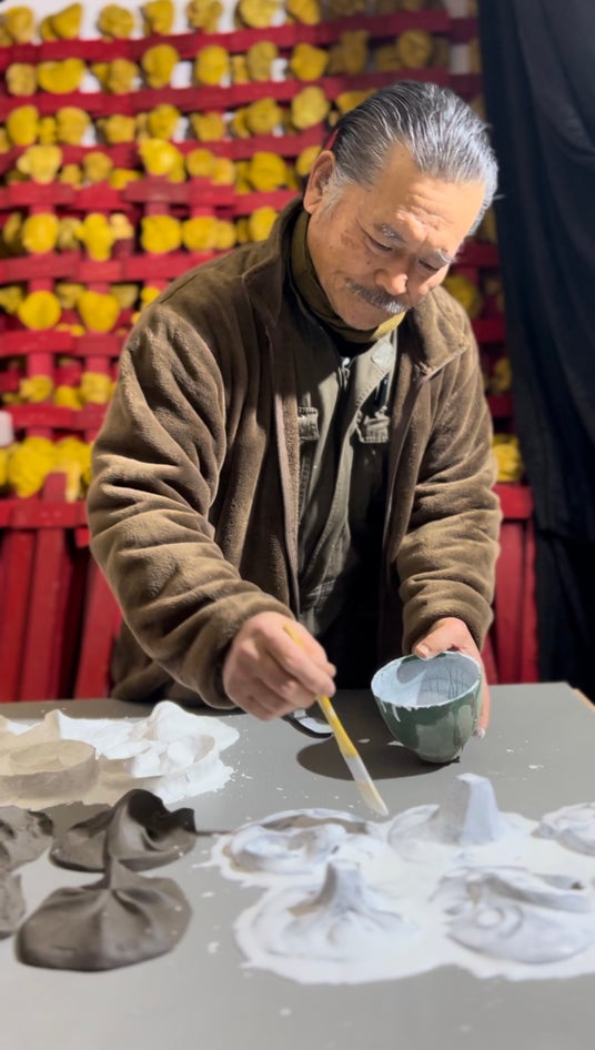 農耕民族にとって、土は生活と文化の根源です。土から生み出される農産物を食べ、蓄え、加工し、他の財物と交換することによって、社会が成り立ちます。土から出てくる翡翠やメノウに価値を見出して尊ぶ中国の文化も、彼が追求している芸術と同じく、土に対する畏敬の念と愛着を原点としています。