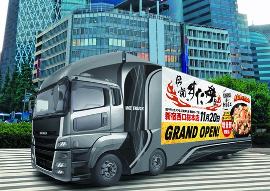 株式会社 WE TRUCK(本社:東京都港区、以下WE TRUCK)は、圧倒的訴求力のモビリティAIサイネージで、『伝説のすた丼屋』をはじめとして数々のブランドの飲食店を展開する株式会社アントワークス (本社:東京都杉並区、以下アントワークス)が2024年11月20日にオープンする新店舗『伝説のすた丼屋 新宿西口総本店』のプロモーションを、新宿エリアにて実施します。