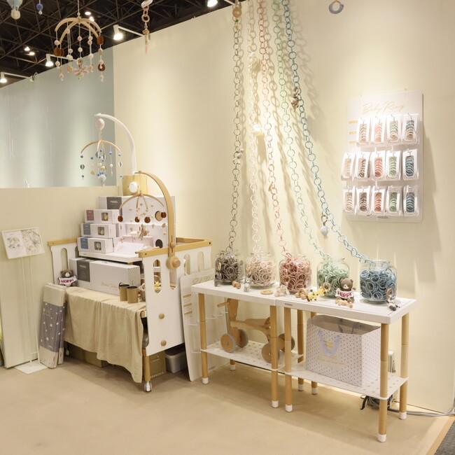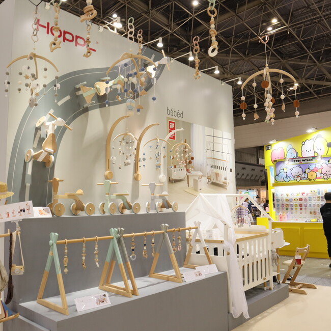 様々な分野の企業が新製品や創意工夫に溢れた商品を出展するギフトショーでは、今回のムービーでも使用したコロコロチェア&デスクのみならず、新商品のカーボンニュートラルな木製ベビーメリーや、形を変えながら10年間に渡って使用できるベビーベッドなど、様々なHOPPL製品を出展します。