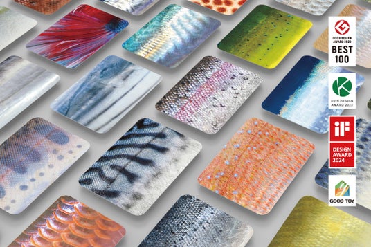 日常では見ることのない魚の鮮やかな色彩やメタリック感、ウロコの凹凸を特殊な印刷技術で再現しています。