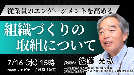 従業員がいきいきと働ける職場づくりには何が必要か…本セミナーでは、従業員のエンゲージメントを高めるための具体的な組織づくりや健康経営の実践事例を通じて、働きがいと組織活力の向上につながるヒントをお届けします。