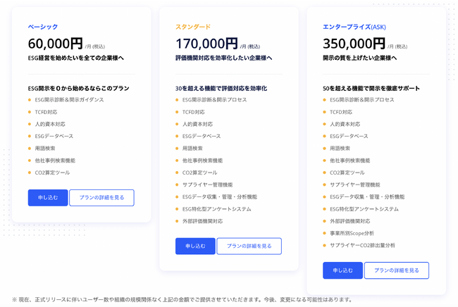 estomaは、コストの予測が困難な従量課金制ではなく、定額制を採用しています。そのため、分析・管理対象のサプライヤー数が増えても利用料は一定となっています。estomaは企業のESG活動を推進することを第一に考えており、お客様が安心してご利用できるようになっています。