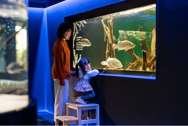 お子さまが水槽を見やすいように館内には踏み台を多数ご用意しております。