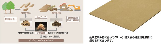建築物の解体古材、廃木材などを主原料とする、環境に配慮したエコ素材です。木材を繊維状にしてから板状に成形し、乾燥させた木質ボードで、主に畳の芯材や外壁下地材、建築現場で作業中に床を保護する養生材などに活用されています。