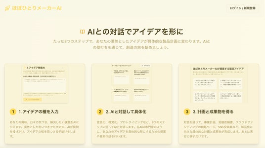 VITRO(東京都渋谷区)は、個人がAIとともに商品を企画・開発・クラウドファンディングできる生成AIツール「ほぼひとりメーカーAI」を2025年7月3日にリリース。