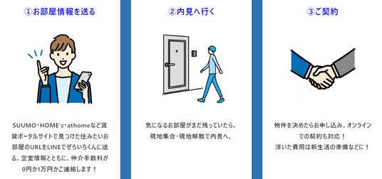 LINEのみのやり取りで、来店なしで新居を決定することも可能です。不動産屋さんに行って長時間待たされるようなこともありません。